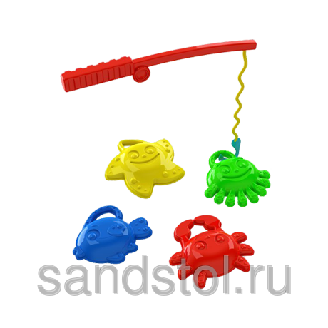 Формочки краба, осьминога, морской звезды, рыбки и удобная удочка